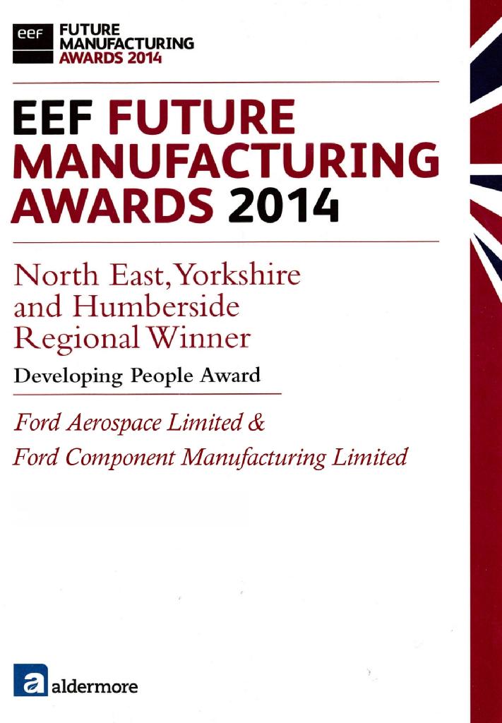Ford Aerospace Ltd and Ford Component Manufacturing Ltd have been named North East, Yorkshire and Humberside Regional Winner of the Developing People Award in the EEF Future Manufacturing Awards for 2014. Well done Ford!